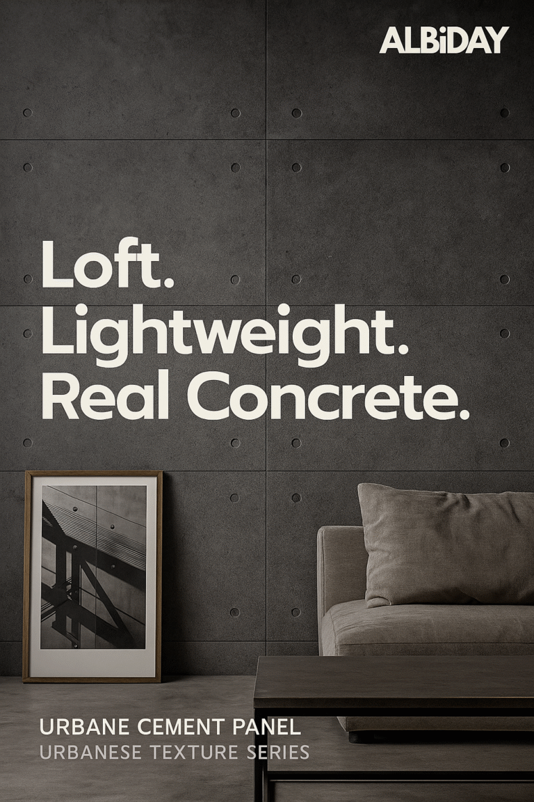 "ALBiDAY reimagines the serene brutality of Ando Tadao's architecture through our concrete panel designs — minimalist, bold, and timeless."